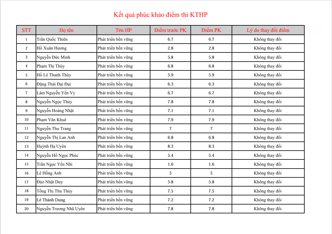 Kết quả phúc khảo điểm thi KTHP (Cập nhật ngày 29/07/2025)