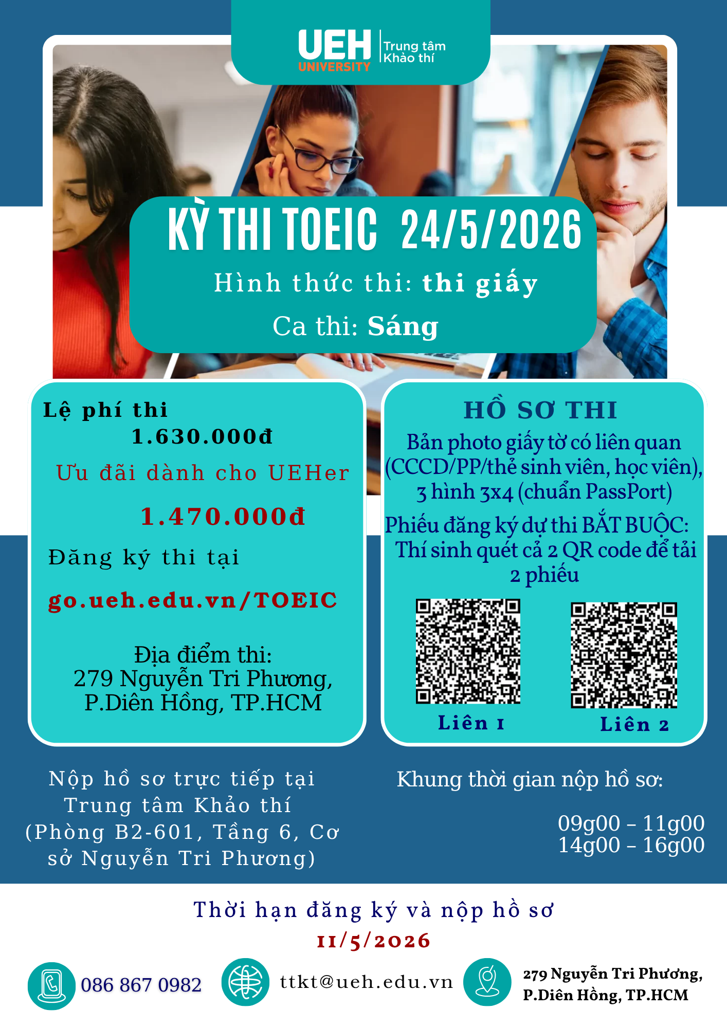 Email Trung tâm Khảo thí: khaothi@ueh.edu.vn,