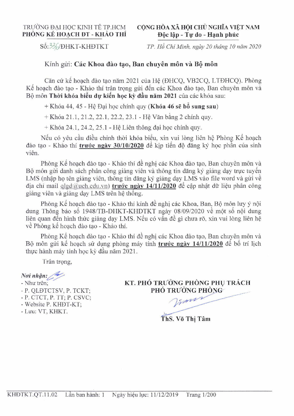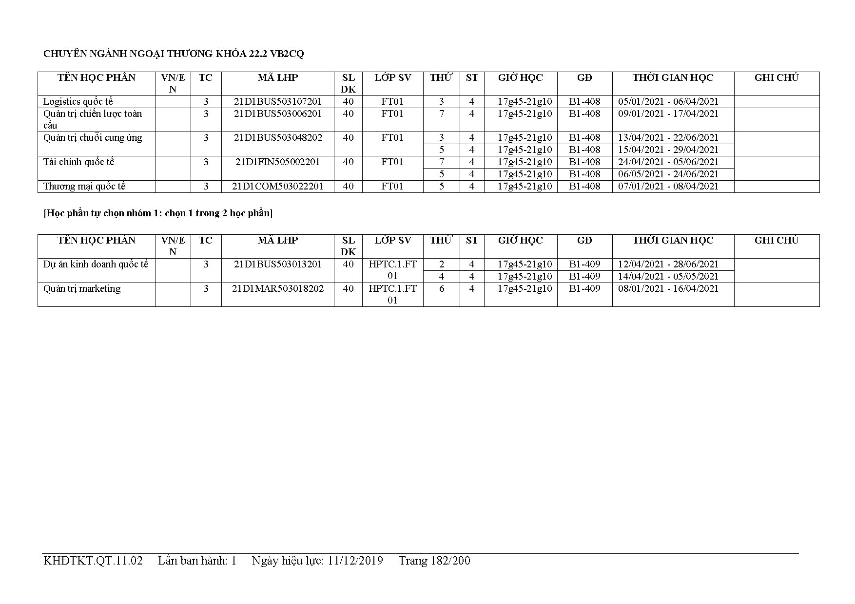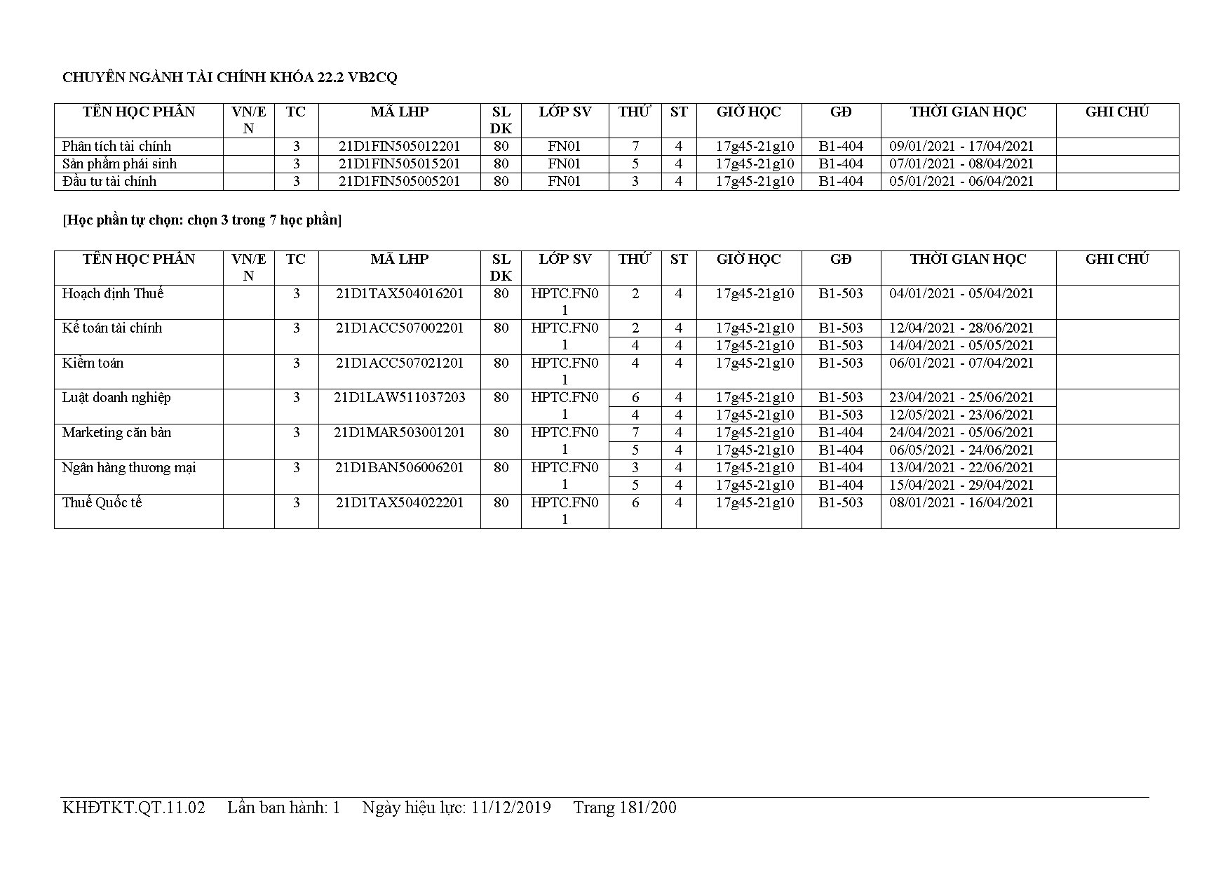 Thời khóa biểu (dự kiến) học kỳ đầu năm 2021_Khóa 22.2 Hệ VB2CQ